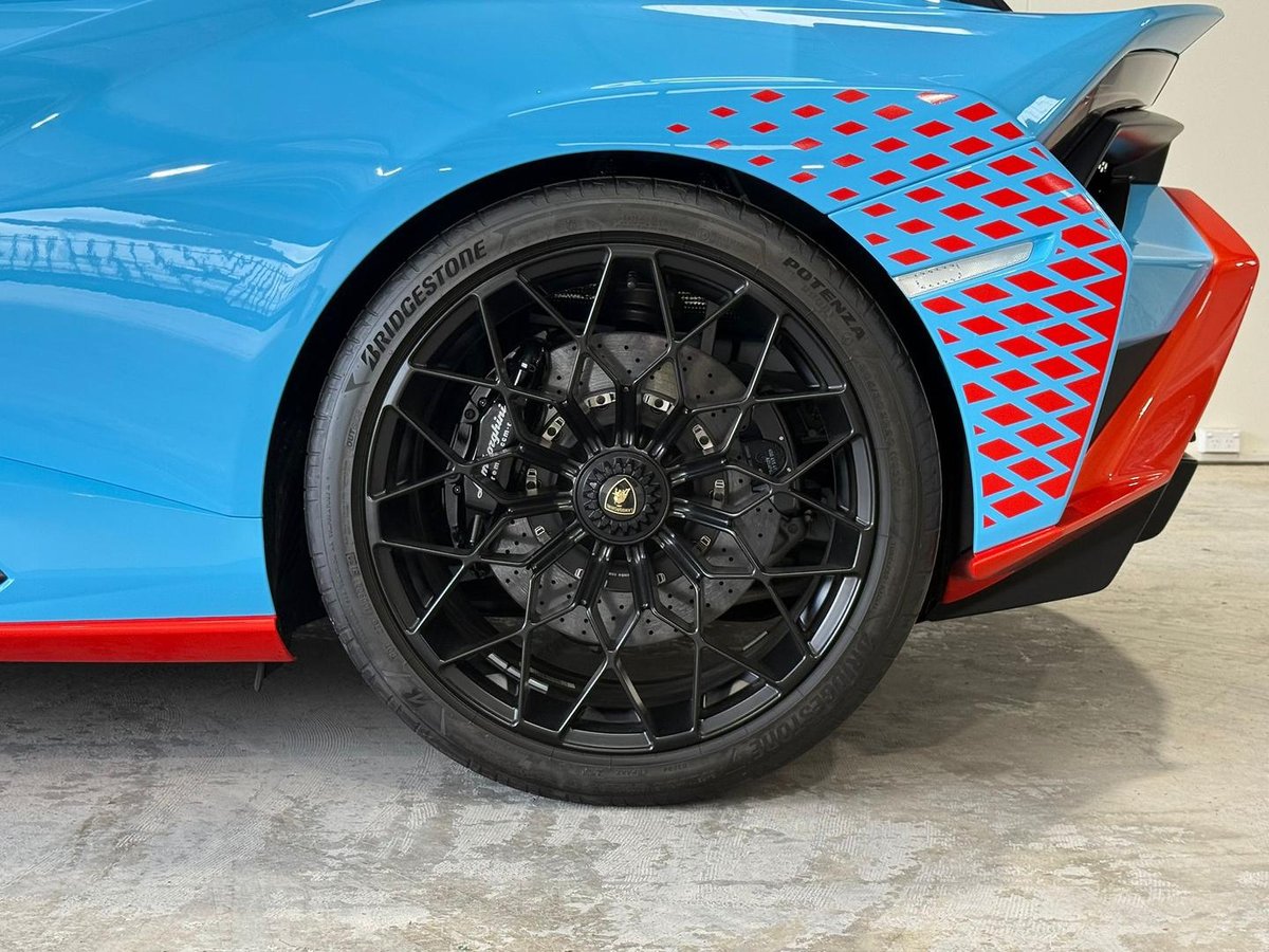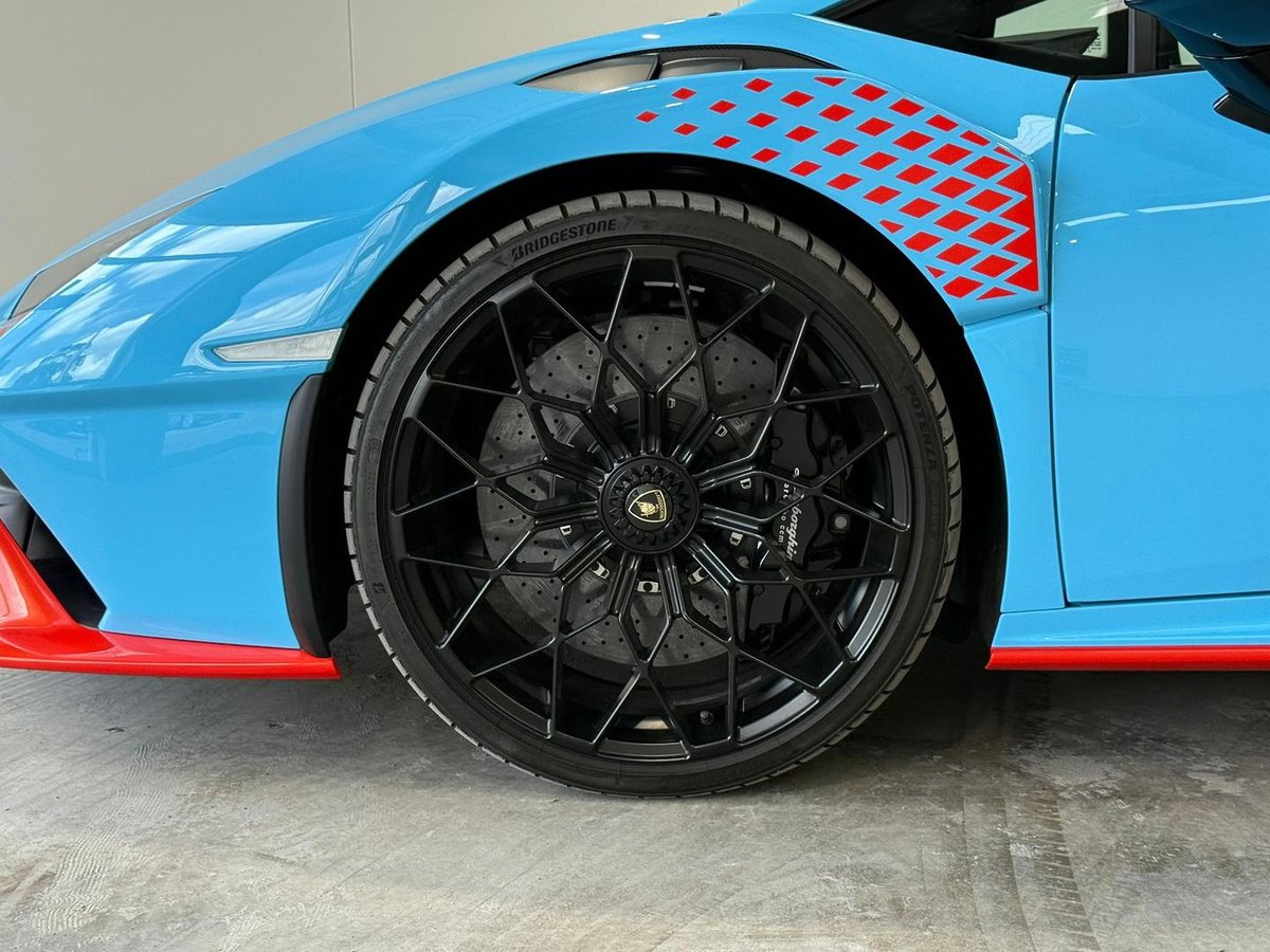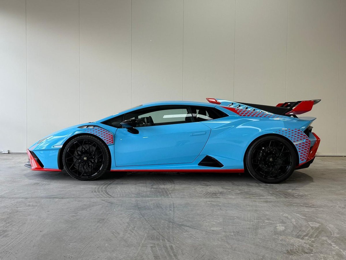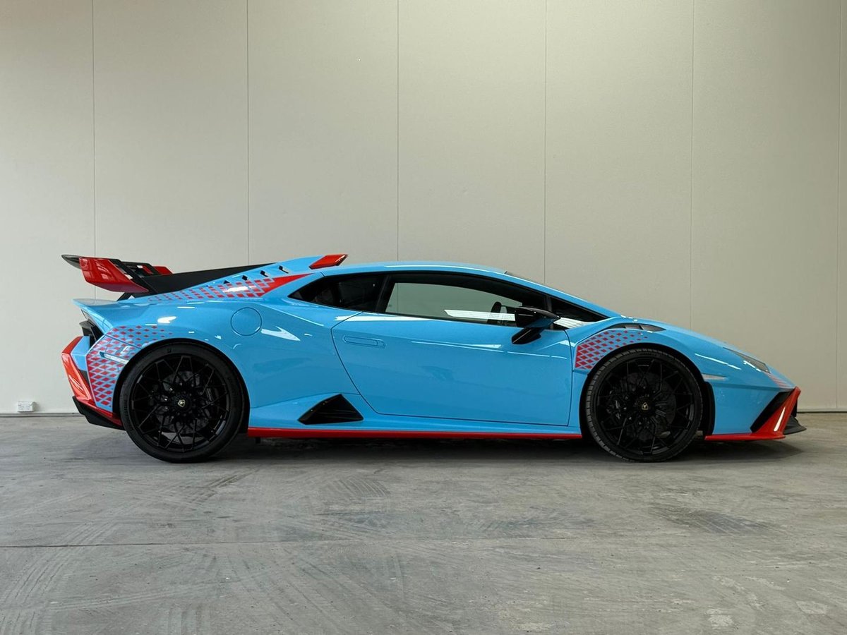 The 2023 Lamborghini Huracán 724 MY23 STO (Super Trofeo Omologato) is a road-legal, track-focused supercar. Finished in blue Laufey, this model is designed for maximum performance, featuring a 5.2-litre naturally aspirated V10 engine, Rear-Wheel Drive (RWD), and a 7-speed dual-clutch transmission (D-CT).